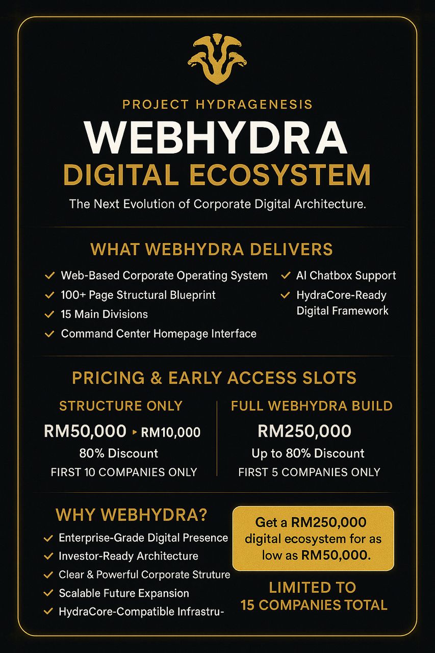 WebHydra is a fully engineered digital operating ecosystem designed to transform modern businesses into structured, scalable, investor-ready organizations.